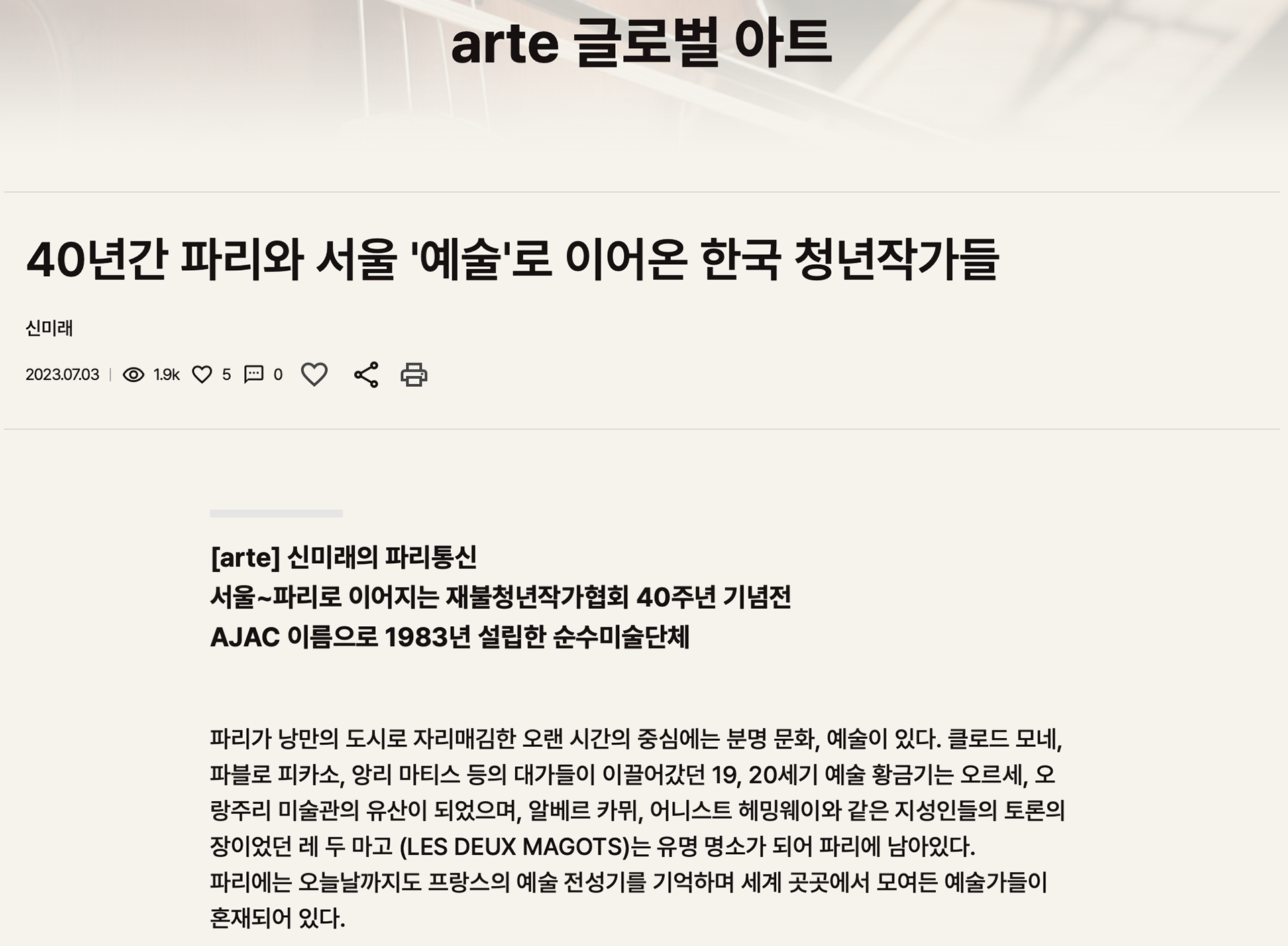 '40e exposition de l’AJAC' 전시 기사